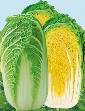 杂交一代娃娃菜类型品种,外叶浓绿色,黄芯,播种后45-55天收获,重1-1.5kg,抗病性强,产量高。