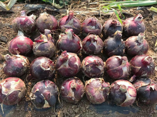 一代杂交品种,表皮亮紫色。早熟,生育期100天左右,鳞茎圆球形,单球重350克左右,直径平均8.5cm,球形均匀,果肉紧实,耐储性强。适合在四月中下旬定植,七月下旬开始收获。肥水管理前控后促,促进鳞茎膨大,以提高商品性。适合甘肃、宁夏、内蒙、黑龙江、吉林等长日照高纬度地区种植。