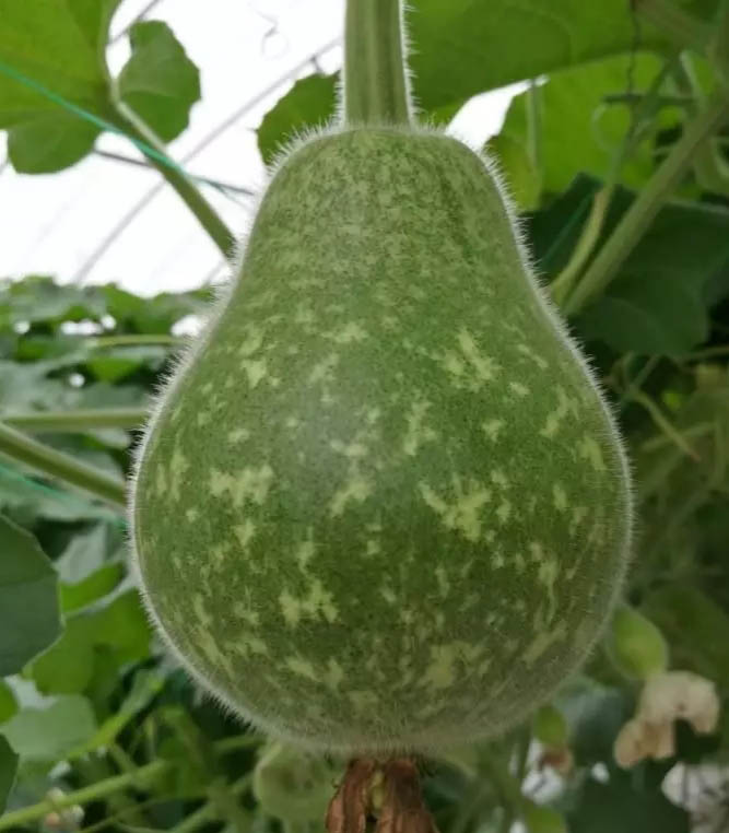 Hybrid F1. Spotted green gourd type, weighing 1.5-3kg per fruit. Good tolerance to heat and drought, good resistance to diseases. Yield is about 3050 kg per mu.